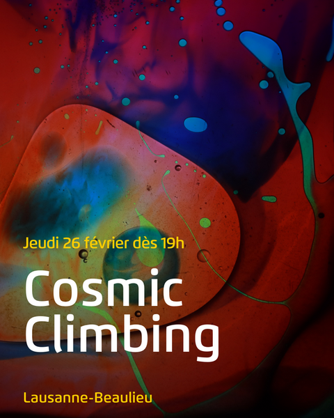Jeudi 26 février, dès 19 heures, embarquez pour un monde où les sons prennent formes, se mêlent aux couleurs et se traduisent en escalade. Le Cosmic Climbing revient à Lausanne-Beaulieu pour une nouvelle soirée de grimpe sensorielle.