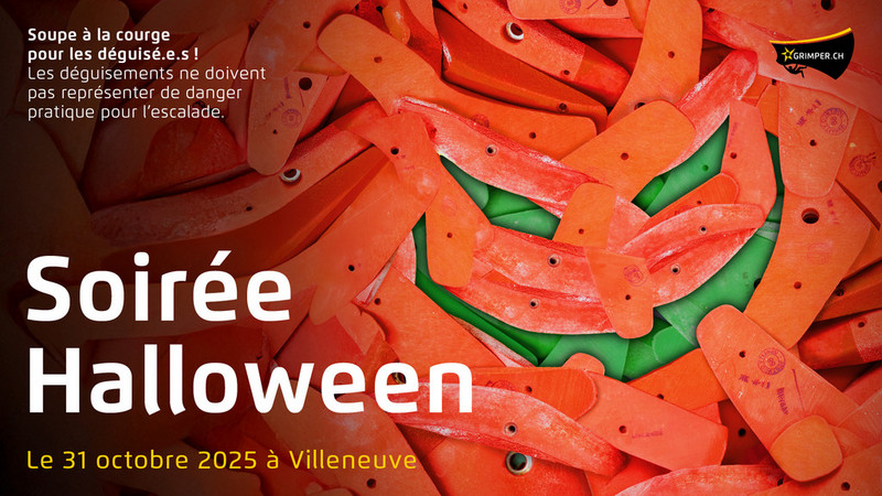 Pour l’occasion, si vous grimpez déguisé.e.s, nous vous offrons la soupe à la courge. Attention toutefois à respecter la sécurité : les costumes ne doivent pas représenter de danger pour la pratique de la grimpe.